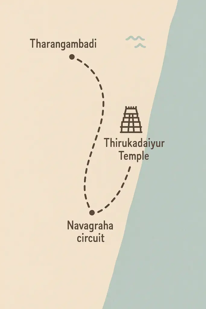 Perfect base for Thirukadaiyur, Navagraha route, & spiritual tours.
